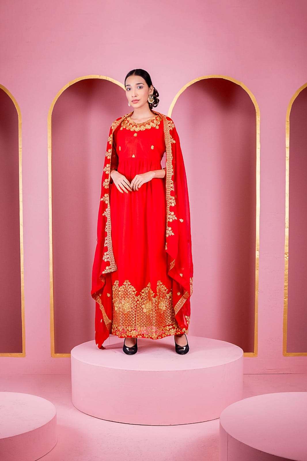 রেডিমেড জর্জেট এমব্রয়ডারি পার্টি ড্রেস