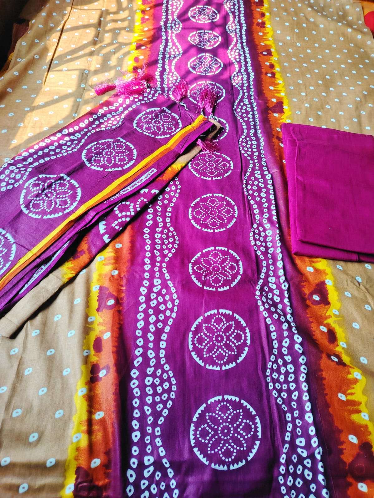 Block Print Three Piece ডিজাইনঃ ব্লক প্রিন্ট সেলাই বিহীন কামিজ লং ৪৬ ইঞ্চি (হাতার কাপড় আলাদা) ওরনা ৫ হাত সালোয়ার ২.৫ গজ