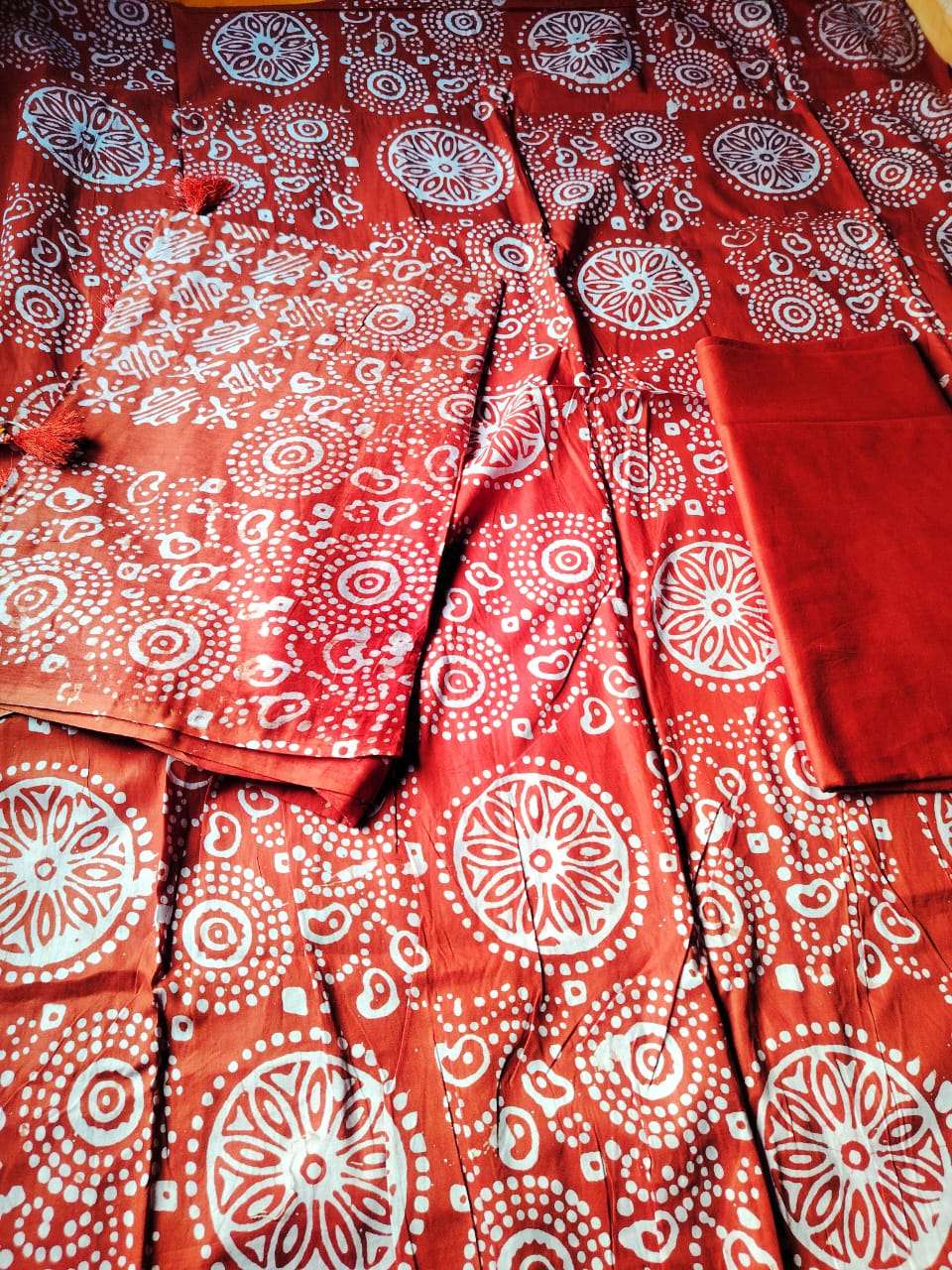 সংক্ষিপ্ত বর্ণনা: katchupi Three piece কামিজ এসি কটন free size প্যান্ট বাটার সিল ওড়না জর্জেট শিপন স্টোন করা সম্পূর্ণ হাতের কাছ টুপি কাজ করা